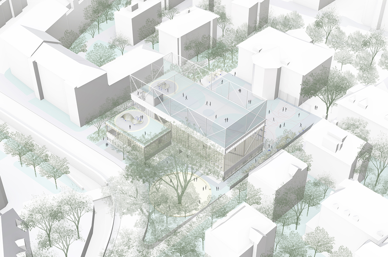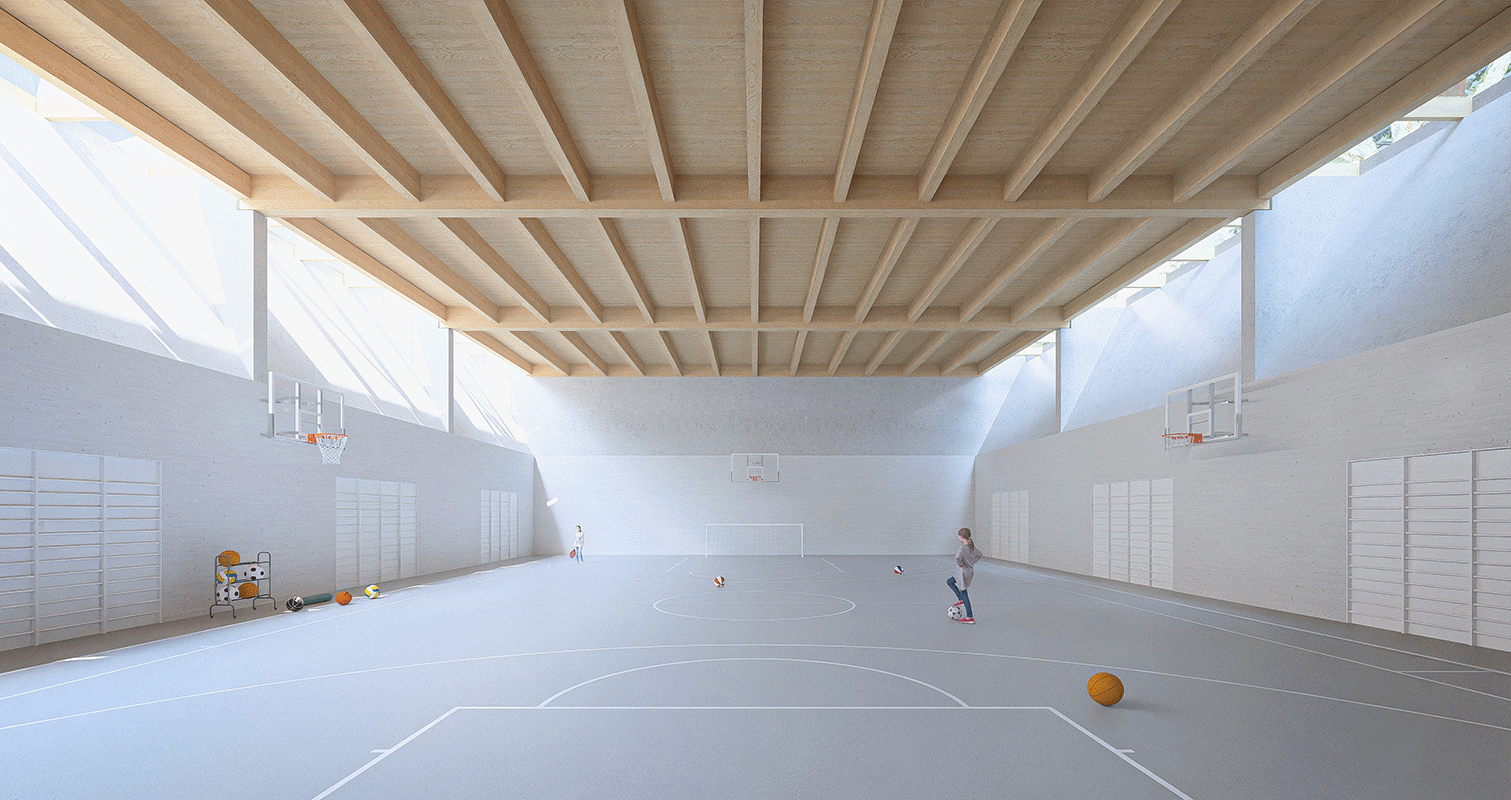 All faciliities are accessible through a vertical circulation core/fire exit located on the SE area, where an independent access area has been located for external access to the sports facilities on the South side. Internally, an interconnected system of wide corridors, (3,50m) will provide access to all facilities.